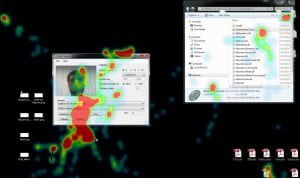 - Geração de mapa de calor. A sessão de rastreamento do olhar pode ser representada como um mapa de calor que pode ser gerado no topo do conteúdo da tela, como páginas da web, aplicativos, imagens estáticas ou vídeos. A visualização ao vivo dos mapas de calor está disponível. O SentiGaze gera mapas de calor para assuntos individuais e também pode mesclar mapas de calor individuais para estatísticas de olhar de vários assuntos .